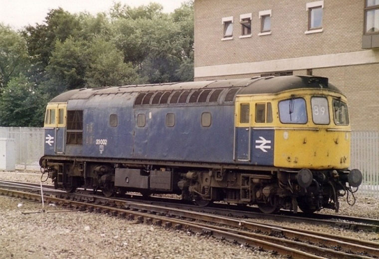 | 33 002 outside Exeter Panel Box, 22nd Aug 1987 Courtesy & © Peter Milner and www.brlocos.com |